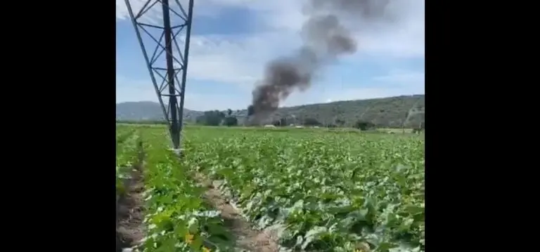 Minutos después, en Protección Civil dieron a conocer que la aeronave que se había desplomado pertenecía a la Comisión Federal de Electricidad, la cual se cayó sobre una zona de sembradíos. Al hacer contacto con la tierra, se incendió, lo que ocasionó la pérdida de vidas de los tripulantes. El accidente generó una columna de humo color negro.