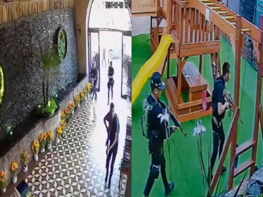 Las grabaciones obtenidas por el sistema de videovigilancia y difundidas en X por el periodista Carlos Arrieta muestran que, a las 16:38 horas, un grupo de individuos armados llegó al lugar a bordo de varios vehículos. Con fusiles y equipo táctico, los pistoleros irrumpieron en el restaurante y amenazaron a los comensales, quienes intentaron refugiarse detrás de la barra y debajo de las mesas.