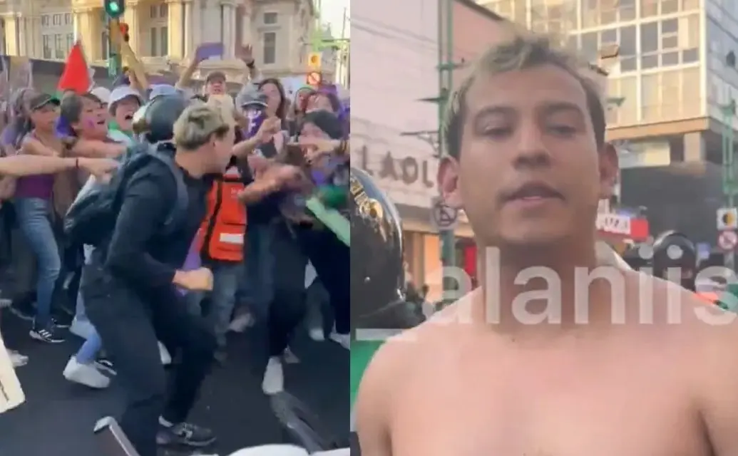 Asimismo, en otro video, se observa que levanta y tira al suelo a la mujer que lo empujó, por lo que otras asistentes a la marcha comienzan a separar al hombre que agredía a la joven. Segundos después, autoridades arribaron al lugar para calmar la situación.