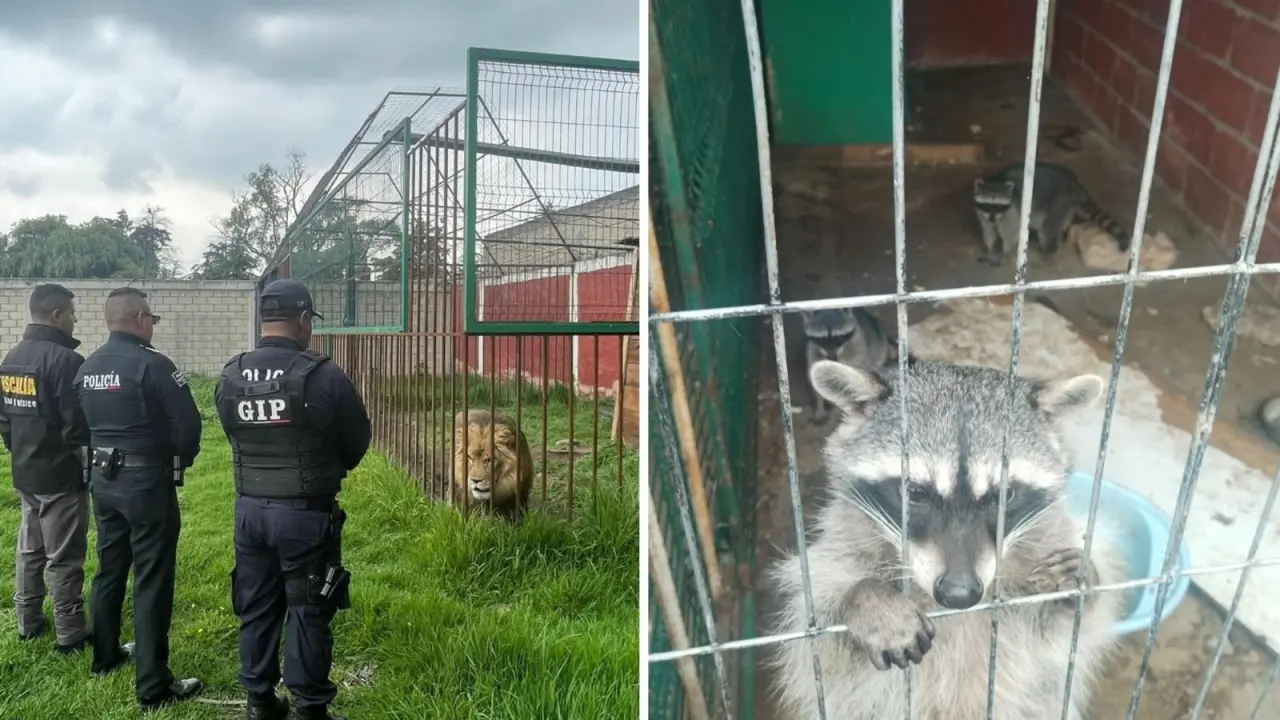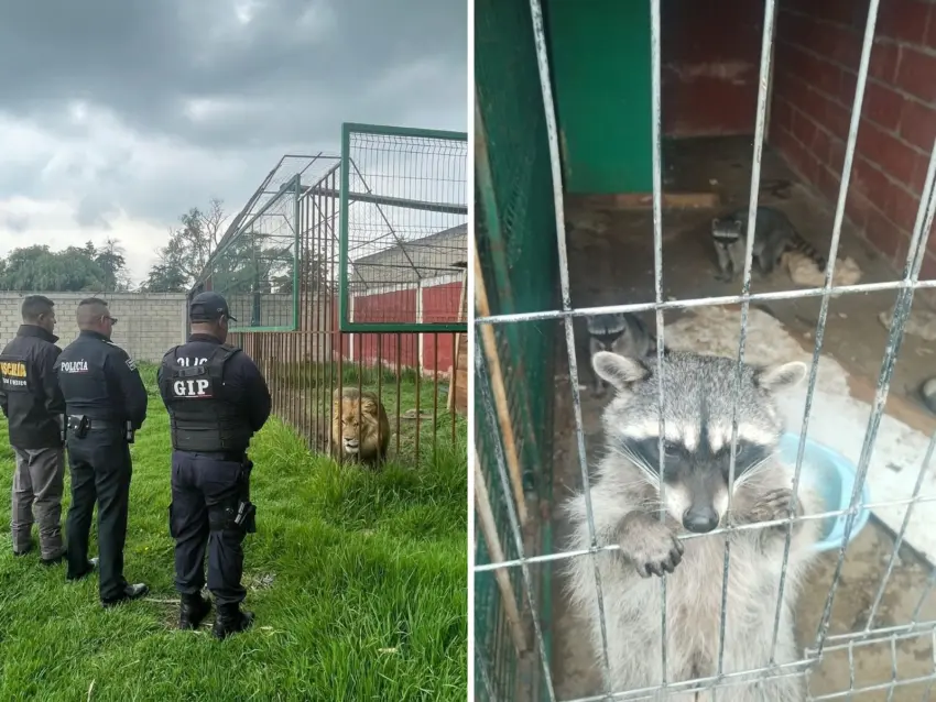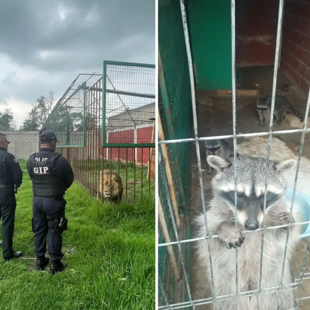 En un operativo conjunto, la Fiscalía General de Justicia del Estado de México (FGJEM), la Procuraduría Federal de Protección al Ambiente (Profepa), la Secretaría de Seguridad del Estado de México y la Dirección de Seguridad Pública y Tránsito Municipal de Zinacantepec, lograron rescatar a cinco mapaches, un león y dos perros que se encontraban enjaulados en una casa de Zinacantepec. El rescate fue posible gracias a una denuncia anónima que alertó a las autoridades sobre la situación en el inmueble ubicado en la colonia San José Barbabosa.