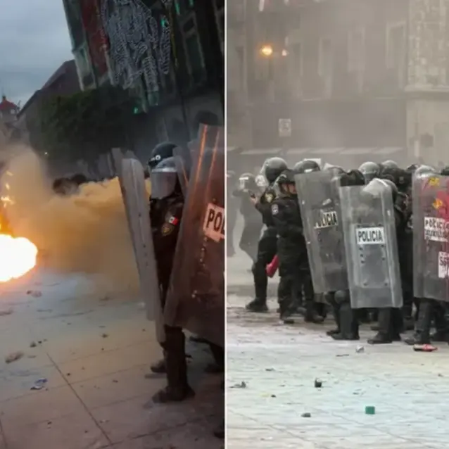 En el primer caso, la explosión de un artefacto pirotécnico alcanzó a varios elementos que caminaban hacia el Zócalo. Videos muestran cómo un objeto lanzado desde los contingentes provocó un conato de incendio, alcanzando los pies de algunos oficiales. Los agentes cayeron al suelo intentando sofocar las llamas que los cubrieron, mientras el humo se expandía por la zona.