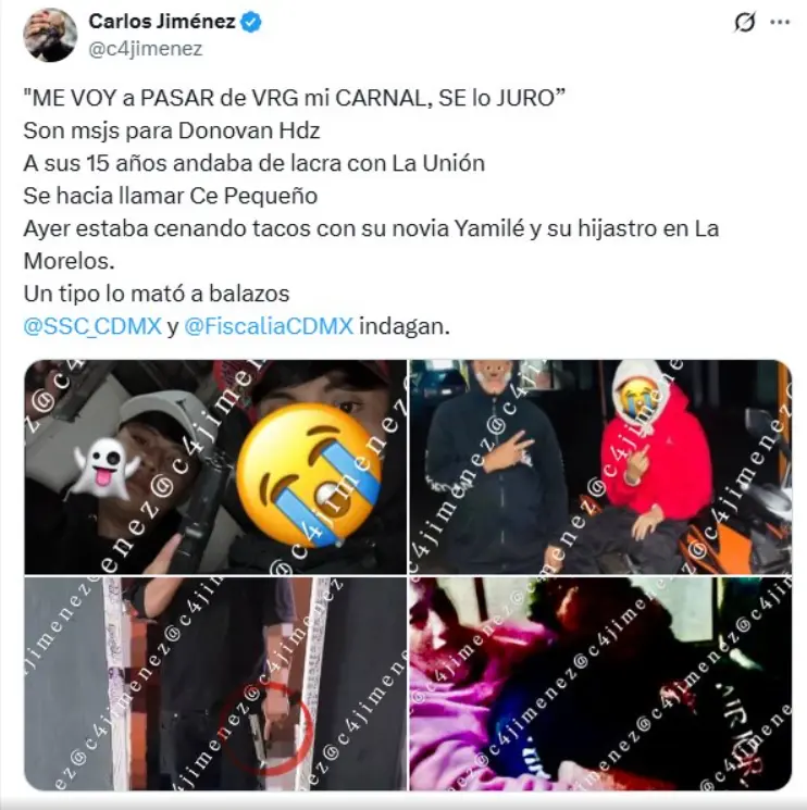 Horas después del asesinato, presuntos miembros de La Anti Unión Tepito burlaron la muerte de Donovan en redes sociales. Publicaron su fotografía con mensajes ofensivos y música de corte bélico, según capturas difundidas por C4 Jiménez.