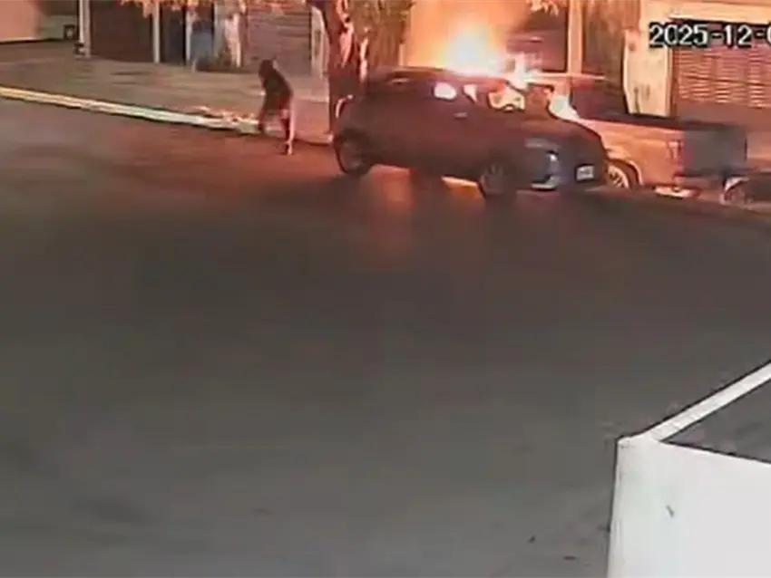 El ataque, captado en cámaras de videovigilancia, mostró la frialdad con la que el agresor actuó: en menos de 30 segundos roció el vehículo y lo dejó envuelto en llamas en plena colonia Del Prado.