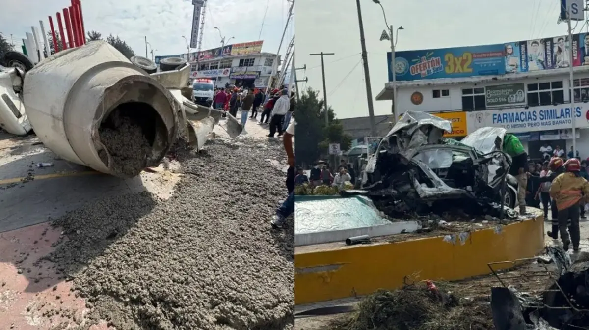 Una revolvedora de concreto se quedó sin frenos mientras circulaba por el municipio de Almoloya de Juárez, Estado de México, lo que desató un grave accidente que dejó al menos dos personas lesionadas, daños materiales de consideración y afectaciones a la circulación.
