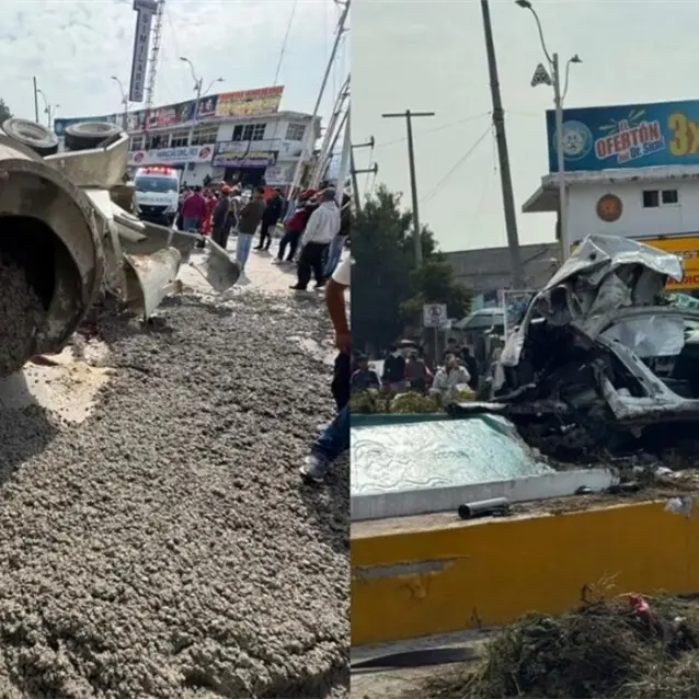 De acuerdo con los primeros reportes, el camión de carga avanzaba a exceso de velocidad cuando el conductor perdió el control de la unidad. En su trayectoria, la revolvedora impactó a varios vehículos, entre ellos un automóvil compacto que ofrecía servicio de taxi, el cual terminó completamente destrozado.