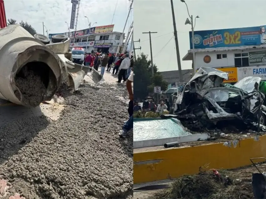 Una revolvedora sin frenos provocó un grave accidente en Almoloya de Juárez, donde un taxi fue impactado y al menos dos personas resultaron heridas.