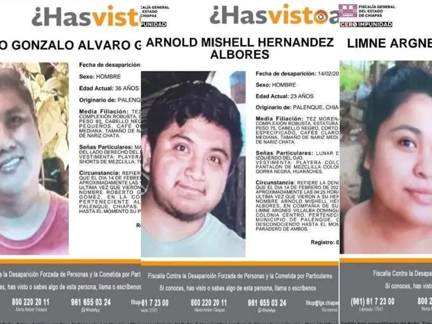 Los tres jóvenes —Roberto Gonzalo Álvaro Gómez, Arnold Mishell Hernández Albores y Limne Argnee Villalba Domínguez— fueron vistos por última vez el 14 de febrero, alrededor de las 16:00 horas, en el centro de Palenque. Todos eran originarios del poblado de Río Chancalá, donde sus familias denunciaron la desaparición tras perder contacto con ellos.