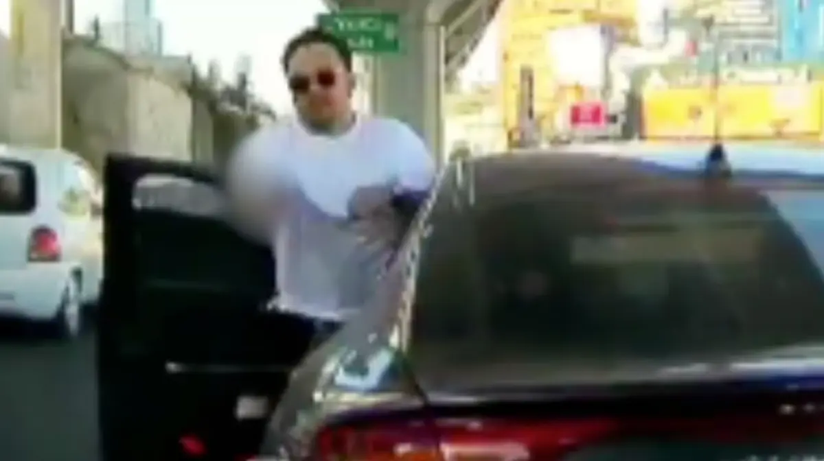 Imágenes del nuevo incidente muestran al sujeto fuera del automóvil, empuñando el arma con la mano derecha y apuntando hacia el frente en actitud amenazante.