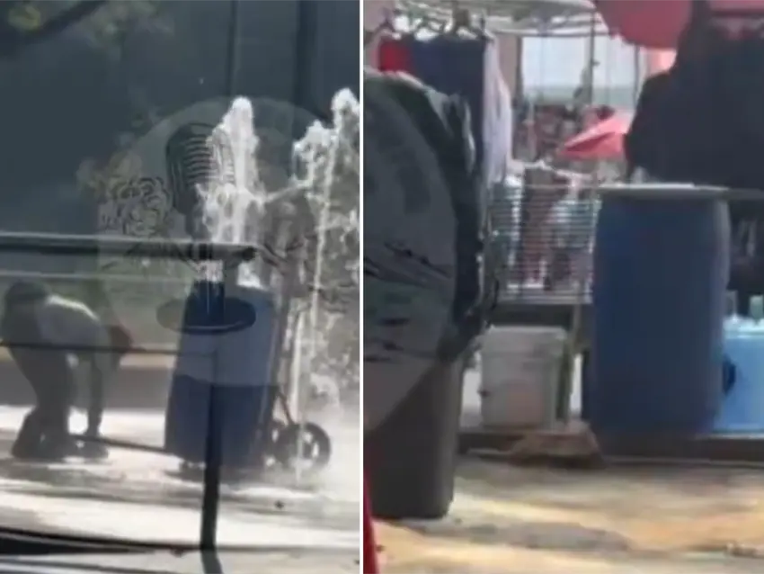 El clip generó indignación en redes al mostrar que el agua utilizada en el puesto de tacos provendría de una fuente pública donde incluso se bañan personas en situación de calle.