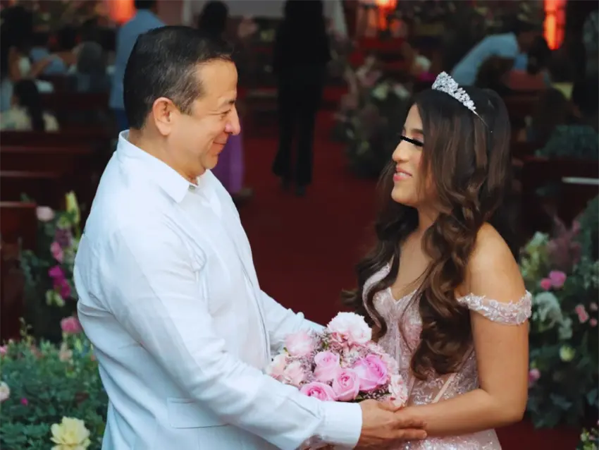 El padrino de la joven fue Marcos Torres Fuentes, subdirector de producción de Pemex Exploración y Producción.