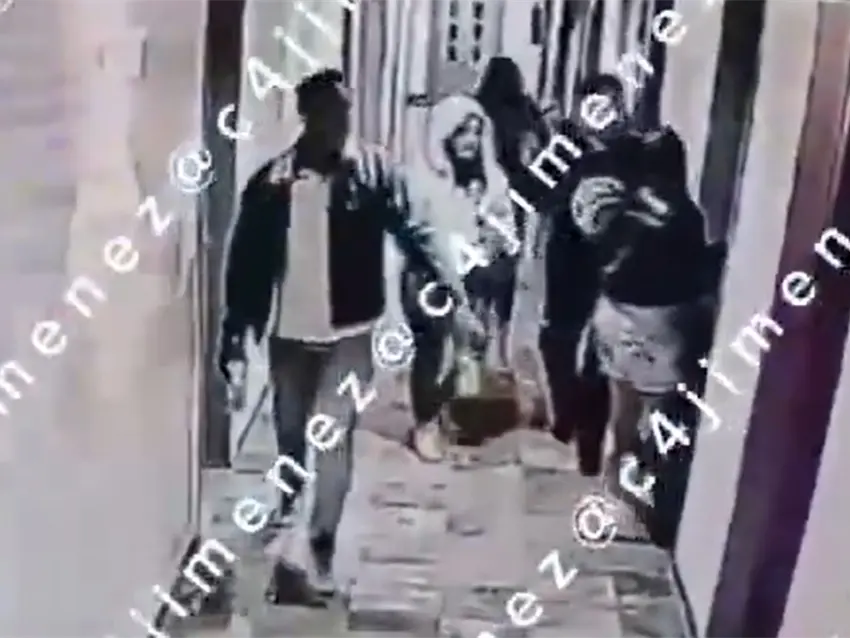 Las cámaras de seguridad documentaron el arribo al hotel alrededor de las 4:08 de la madrugada. En las imágenes se observa a Joshua con visibles dificultades para caminar, tambaleándose mientras sostenía botellas en las manos. Su amigo Carlos permanecía junto a las tres mujeres mientras ingresaban al inmueble.
