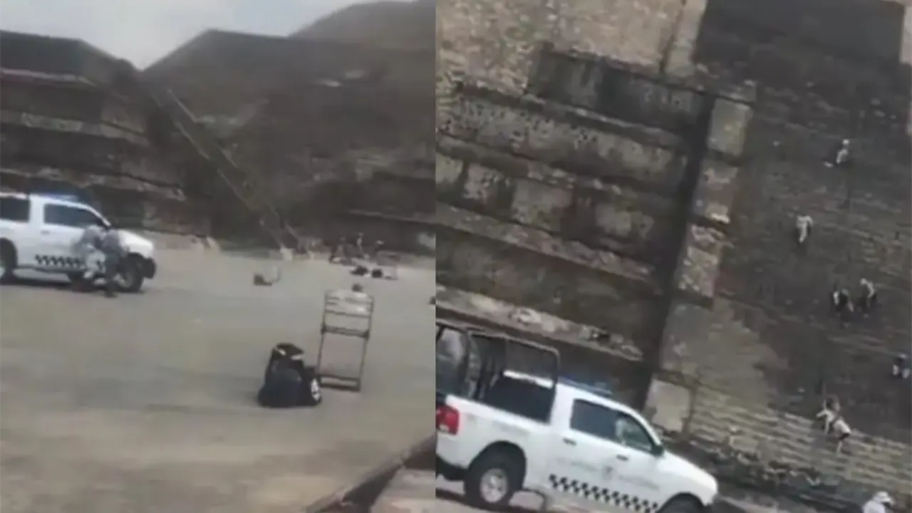 De acuerdo con los videos, el sujeto permanecía en una de las plataformas de la pirámide mientras los elementos de la Guardia Nacional avanzaban para neutralizarlo. Testigos relatan que, en medio de la tensión, se escuchaban gritos que exigían a los agentes actuar de inmediato.