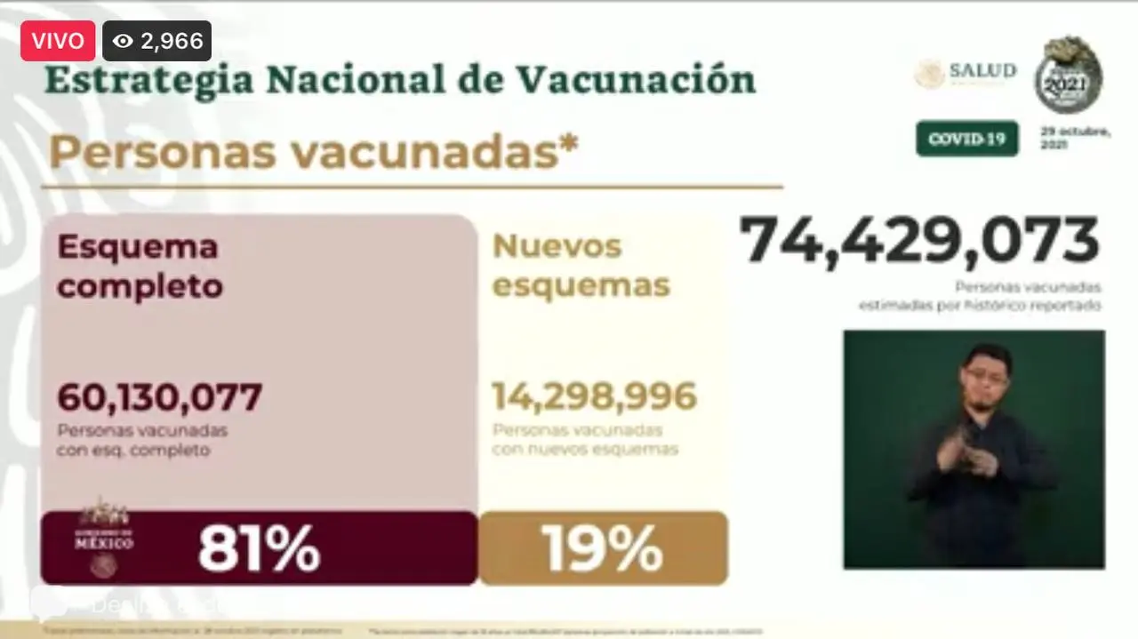 En total se han vacunado 74 millones 429 mil 73 personas, de las cuales 60 millones 130 mil 77 ya tienen el esquema completo.