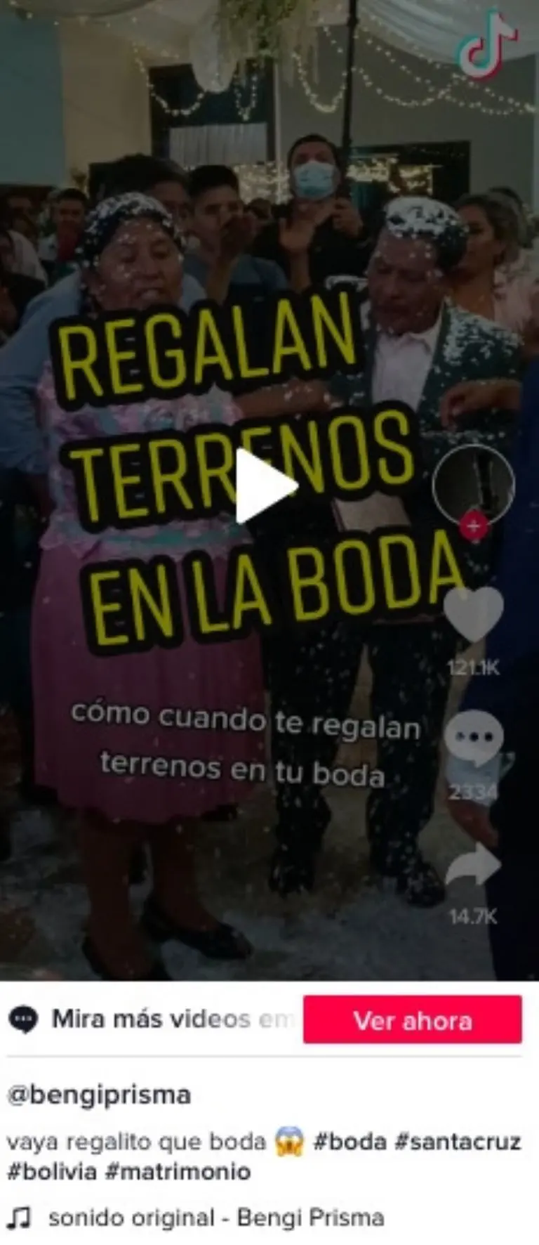 La celebración de un enlace matrimonial en Bolivia se volvió viral en redes sociales, luego de que, a través de un video se mostrará como la pareja de novios recibió como regalo de bodas ¡un terreno!. Algo que llamó la atención de los internautas por la peculiaridad del obsequio.