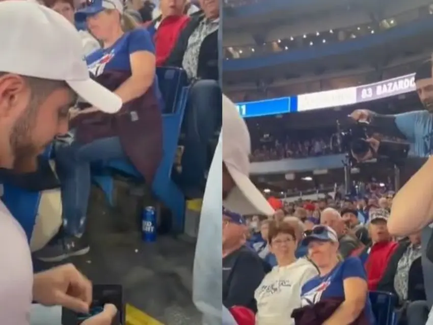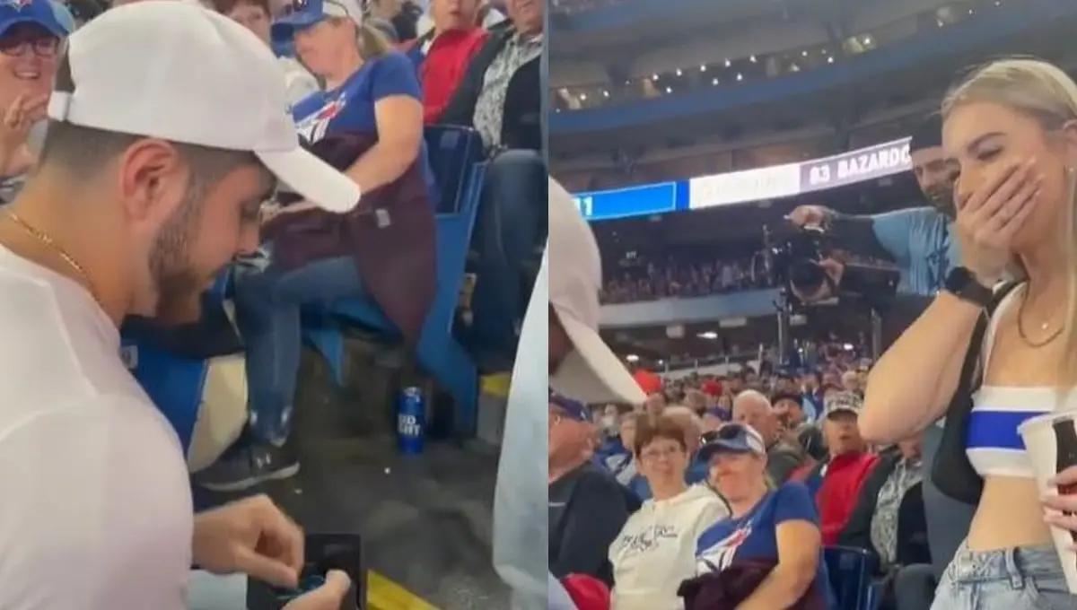 Todo ocurrió durante un partido de béisbol entre los equipos Toronto Blue Jays y Boston Red Sox, cuando, de pronto, el joven pidió la atención de la gente, pues tenía algo importante que decirle a su novia. La pareja se encontraba en una de las escaleras del estadio cuando ocurrieron los hechos.
