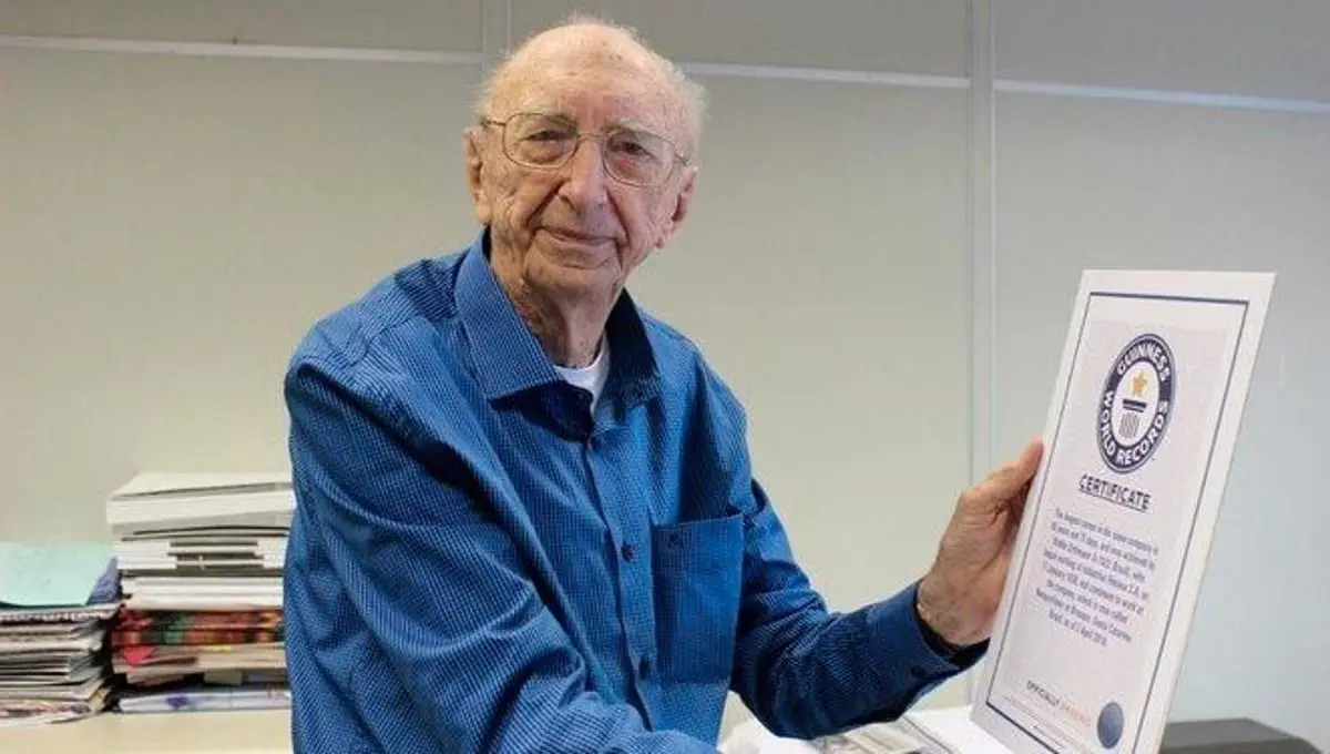 Aunque muchos adultos mayores se enfrentan a problemas para encontrar trabajo debido a que en las empresas cada vez buscan personal más joven, un abuelito de 100 años logró entrar al libro del Récord Guinness por ser la persona que más tiempo lleva trabajando para la misma empresa en el mundo.