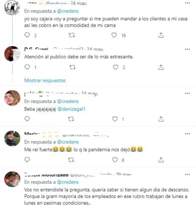 "Me pasó lo mismo! Busco a alguien para atención de mostrador en la panadería y me preguntan si es virtual", fueron algunos comentarios.