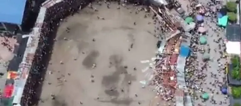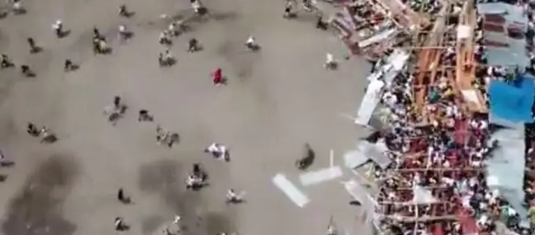 En redes sociales circulan una serie de videos en los que se cómo una plaza de toros en el municipio de El Espinal, en Tolima, Colombia, se viene abajo con un centenar de personas, lo cual ocasionó la muerte de al menos cuatro personas y más de 200 heridos.