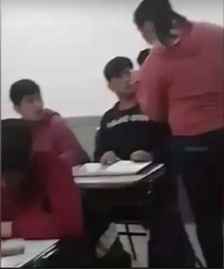 El episodio ocurrió así: un grupo de estudiantes de secundaria estaban tomando clase, cuando en el aula irrumpió una mujer seguida de un acompañante que la iba grabando, Ante la mirada atónita del profesor y los alumnos, la mujer se acercó hacia un alumno sentado en su silla, al cuál increpó: