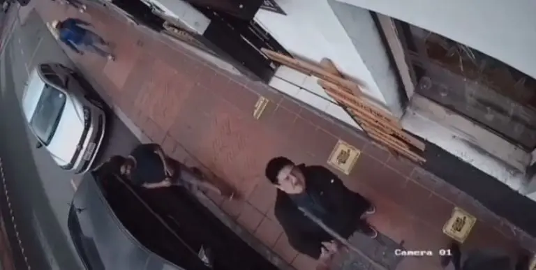 Este hecho fue percibido por el hombre que no pertenecía al grupo, quien decidió alcanzar al acosador para confrontarlo por su acto. En respuesta, el otro hombre lo atacó con rapidez, golpeándolo con la punta de su tubo en el ojo.