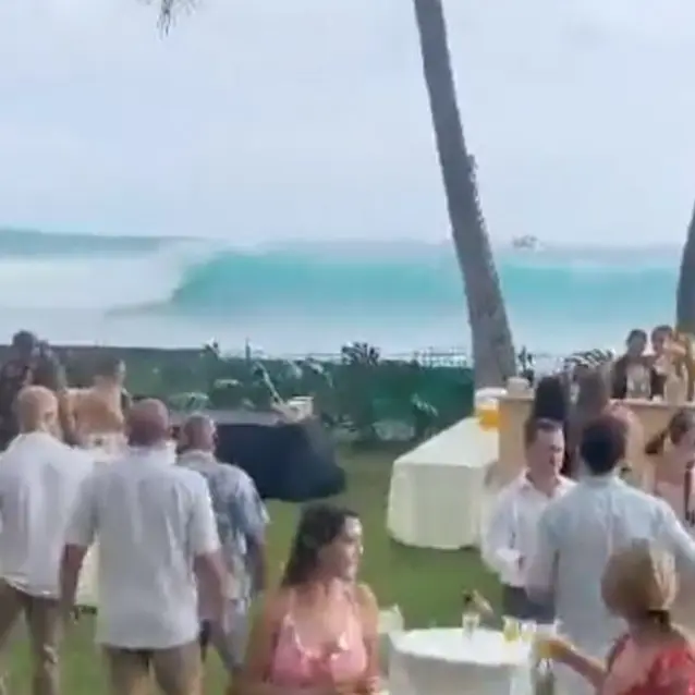 En las últimas horas, Hawái se ha convertido en tendencias luego de darse a conocer videos del momento en el que las olas del mar alcanzan hasta seis metros de altura y salen a la calle, pero no solo eso, pues en un momento hasta invadieron un jardín donde se lleva a cabo una boda.