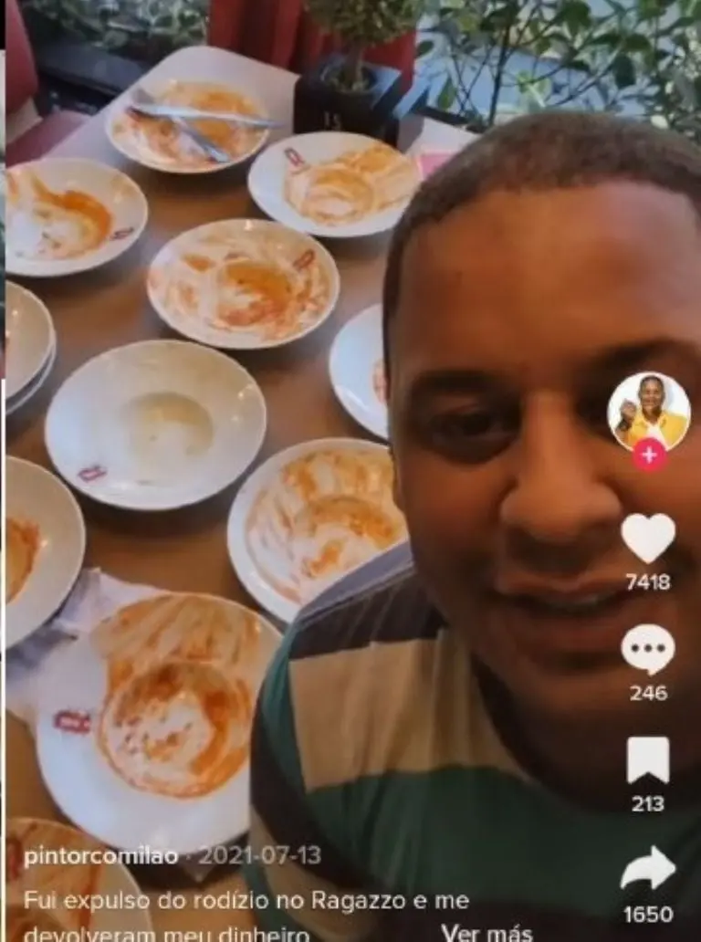 "Estaba buscando el lugar más barato para almorzar, entonces vi este restaurante que ofrecía platos de pasta a gusto por 19.90 reales", narró el hombre a los medios.
