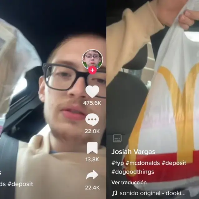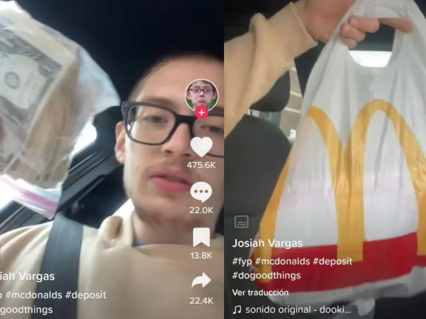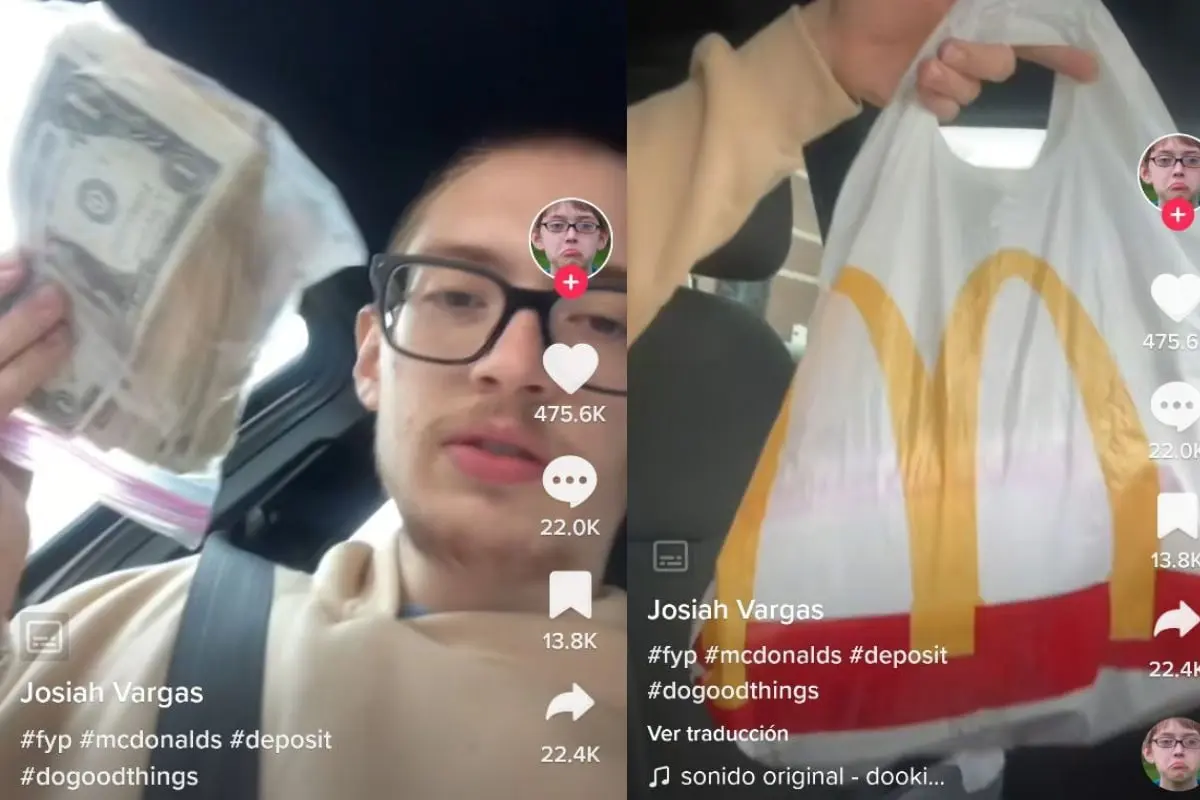 Se trata del usuario de TikTok Josiah Vargas, que usa el nombre de usuario @dookiedoeboy , quien contó que fue comprar un McMuffin en el autoservicio de la cadena de comida rápida, sin embargo, cuando recibió la bolsa en donde debería estar su paquete, se percató de que dentro había cientos de dólares.