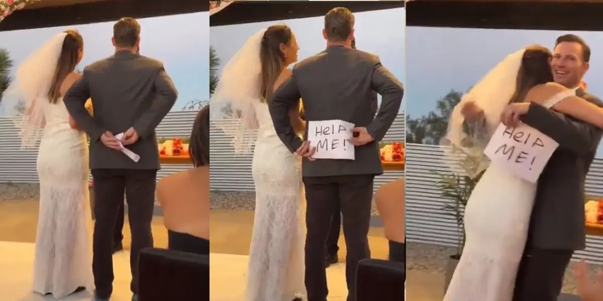 Todo ocurrió durante una reciente ceremonia de boda, el novio de nombre Douglas sorprendió a los asistentes con una inesperada broma. Mientras se encontraba en el altar frente a su novia, Douglas procedió a leer sus votos matrimoniales. Sin embargo, en un giro inusual, extrajo un trozo de papel de su chaqueta que, al desplegarse, revelaba las palabras "¡AYÚDENME!" escritas en negrita en su espalda.