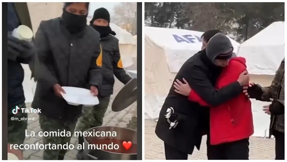 "Vamos a dar sopita, frijolitos refritos y barbacoa de res. Hace bastante frío, pero estamos con todas las ganas apoyando a nuestros hermanos los turcos", mencionó un integrante del ejército mexicano en el video.