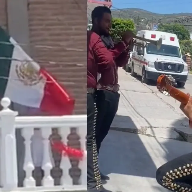 Esta inesperada pero conmovedora actuación provocó risas y carcajadas tanto en la familia como en los mariachis. Sin perder el ritmo, los músicos continuaron tocando el himno nacional mexicano mientras el hombre balanceaba la bandera desde la terraza de su casa, como si estuviera presidiendo una ceremonia oficial.