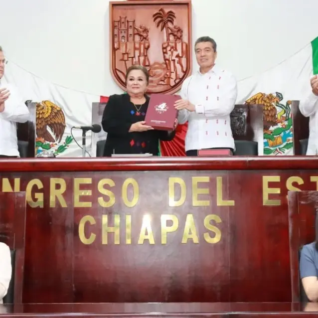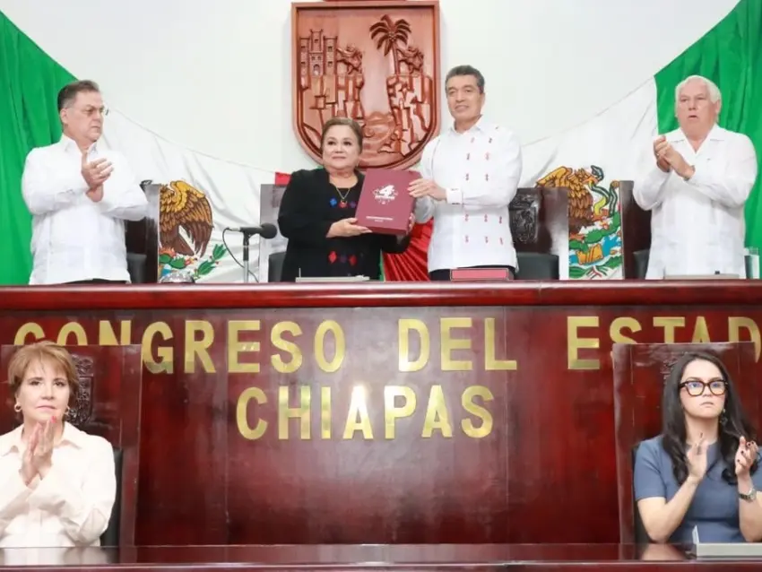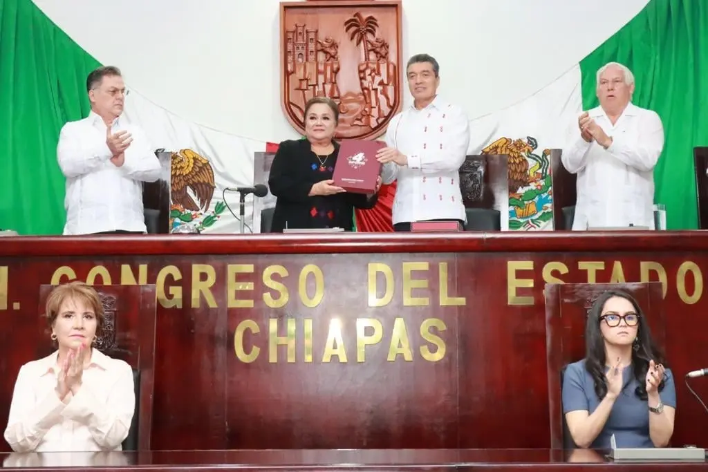 Al presentar su Cuarto Informe de Gobierno ante el Congreso del Estado, el gobernador Rutilio Escandón Cadenas aseguró que la consolidación de un gobierno democrático hoy se refleja con estabilidad política, respeto a los derechos humanos y la dignidad de las personas, lo que constituye un verdadero Estado de Derecho que está concretando la Cuarta Transformación que se da pacíficamente en tiempos de reconciliación, austeridad y justicia.
