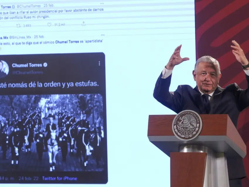 Andrés Manuel López Obrador, presidente de México, aprovechó su conferencia de prensa matutina de este lunes para mostrar un tuit del influencer Chumel Torres, en el que el también comediante manifestaba su apoyo al expresidente Felipe Calderón, a quien en la publicación se le ve rodeado por militares, montando a caballo con una bandera en la mano.