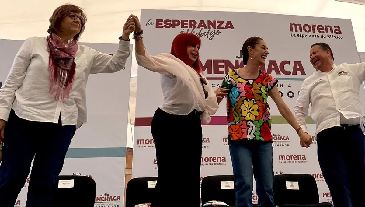 El candidato de Juntos Hacemos Historia al gobierno de Hidalgo, Julio Menchaca, recibió este domingo el espaldarazo de la jefa del Gobierno de la Ciudad de México, Claudia Sheinbaum, y la gobernadora de Campeche, Layda Sansores, durante un encuentro con mujeres en Pachuca.