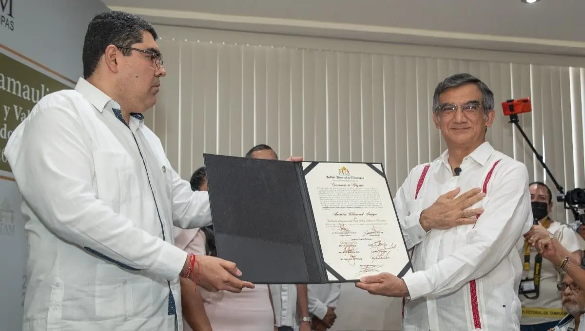 El Instituto Electoral de Tamaulipas (Ietam) entregó la constancia de mayoría como candidato electo a gobernador a Américo Villarreal Anaya, de la coalición Juntos Hacemos Historia (Morena, PT y PVEM).