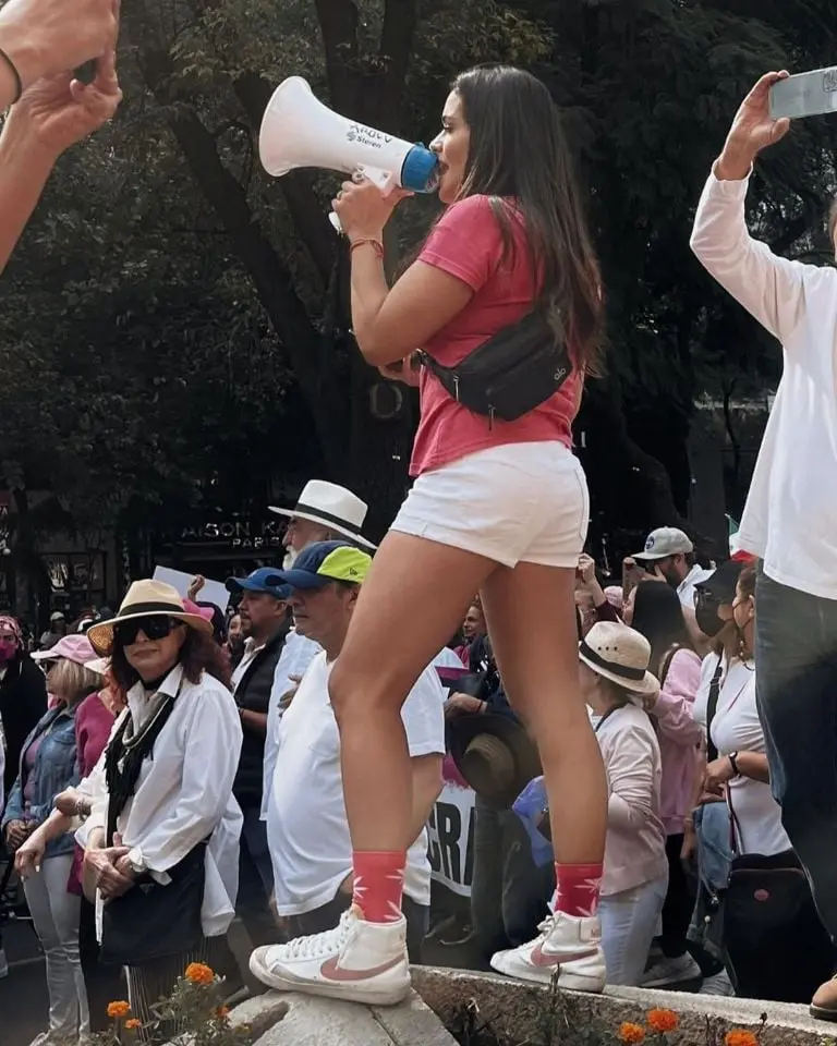 Es reconocida por su participación en movimientos feministas, como la marcha del 25 de noviembre de 2021 en CDMX.