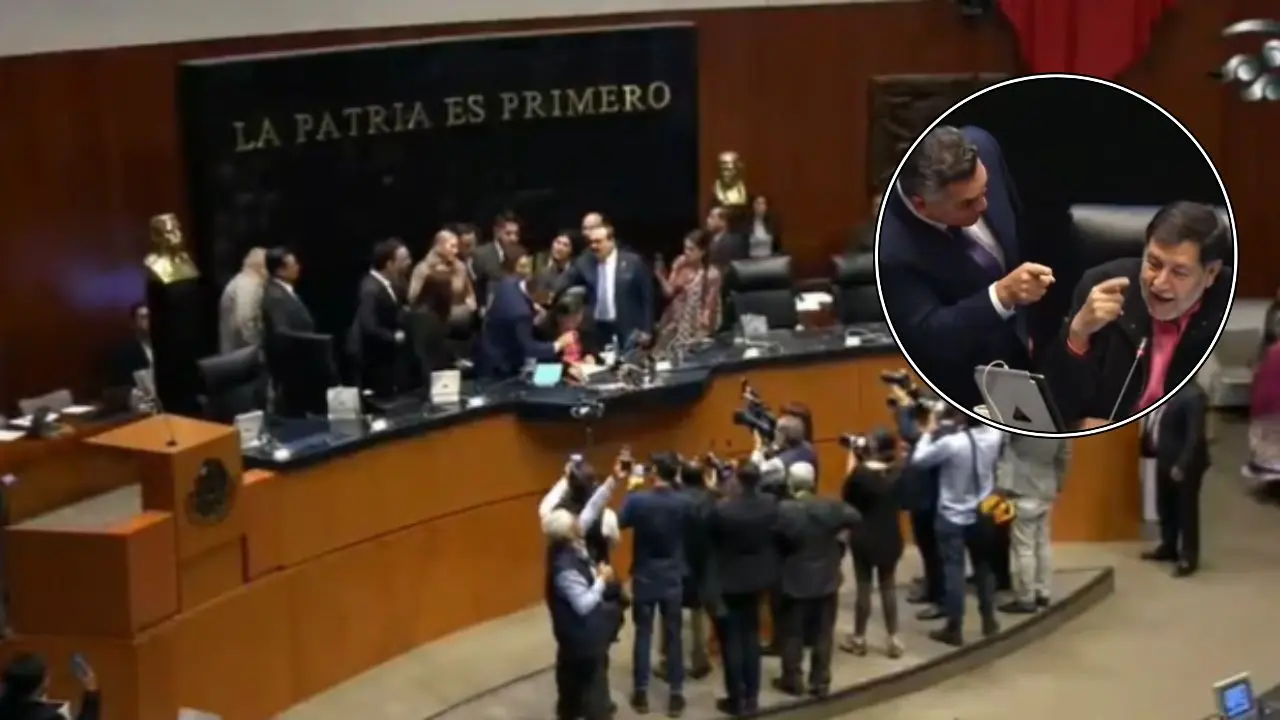 El senador y líder nacional del Partido Revolucionario Institucional (PRI), Alejandro "Alito" Moreno, perdió el control durante la sesión legislativa del 31 y dejó su escaño para encarar al presidente del Senado, Gerardo Fernández Noroña.