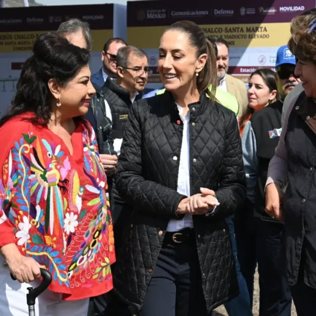 La presidenta de la Ciudad de México, Claudia Sheinbaum, supervisó esta mañana el avance de la construcción del Trolebús Elevado que conectará Santa Martha Acatitla, en la capital, con Chalco, en el Estado de México. Acompañada por la jefa de Gobierno de la Ciudad de México, Clara Brugada, y la gobernadora del Estado de México, Delfina Gómez, Sheinbaum destacó la importancia de esta obra para la movilidad metropolitana.