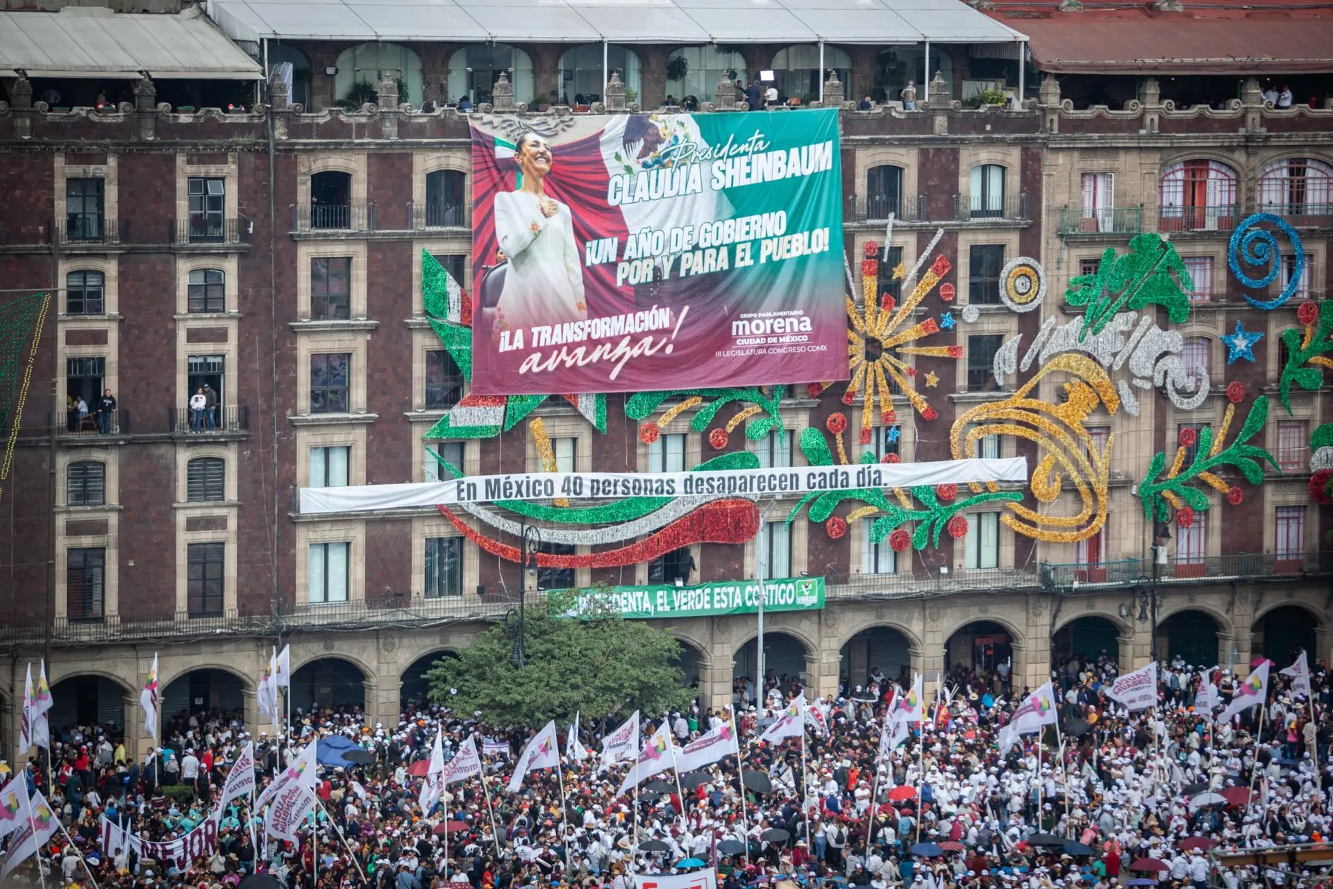 Cuartoscuro. La presidenta Claudia Sheinbaum encabezó un mitin en el Zócalo de la Ciudad de México para conmemorar su primer año de gobierno.Presidencia. El evento fue presentado como una "rendición de cuentas" y reunió a miles de simpatizantes desde temprano. Presidencia. Sheinbaum destacó su cercanía con Andrés Manuel López Obrador, a quien calificó de "gran presidente".Captura de pantalla. Afirmó que sus adversarios buscan separarlos, pero "eso no va a ocurrir". Captura de pantalla. Dijo que AMLO es un ejemplo de honradez y reiteró que seguirá su legado político.Captura de pantalla. Recordó que durante el periodo neoliberal, casi la mitad de los mexicanos vivía en pobreza. Captura de pantalla. Aseguró que la pobreza se redujo del 45 % al 25 %, y que el país "va por el camino correcto". Captura de pantalla. Enumeró las principales reformas aprobadas durante su primer año de gobierno. Captura de pantalla. Entre ellas, la reforma al Poder Judicial, que busca mayor transparencia y elección directa de jueces. Captura de pantalla. Destacó la reforma para reconocer constitucionalmente a los pueblos indígenas. Captura de pantalla. Anunció modificaciones a los artículos 25, 27 y 28 para revertir parte de la Reforma Energética de 2013. Captura de pantalla. Celebró la aprobación de la reforma que convierte los programas sociales en derechos constitucionales. Captura de pantalla. Recordó que a partir de 2030 quedará prohibida la reelección en cualquier cargo público. Captura de pantalla. También señaló que se prohíbe el nepotismo en todos los niveles de gobierno. Captura de pantalla. En seguridad, informó que se redujeron 27 homicidios diarios entre septiembre de 2024 y septiembre de 2025. Cuartoscuro. Presentó un programa de viviendas para familias con ingresos menores a dos salarios mínimos. Cuartoscuro. Indicó que ya inició la construcción de 300 mil viviendas en distintas regiones del país. Cuartoscuro. En infraestructura, anunció la conclusión del Tren Interurbano México-Toluca y la construcción del México-Pachuca y el Tren Maya de Carga. Informó que, tras votación popular, el tren México–Nuevo Laredo se llamará Tren del Golfo de México. Cuartoscuro. Cerró su discurso con un mensaje de soberanía: "El pueblo de México no aceptará intromisiones de ninguna potencia extranjera", y prometió "dar lo mejor de sí misma" en los próximos años.