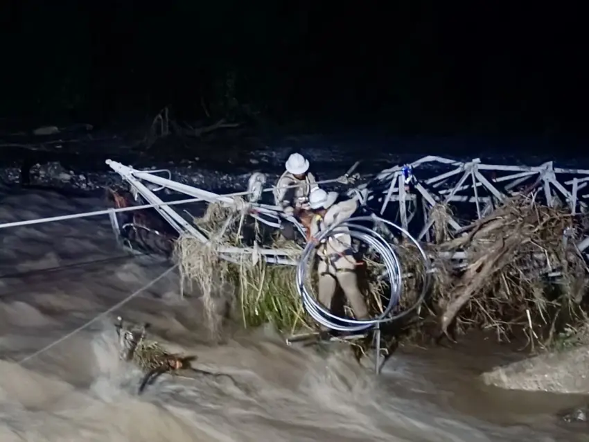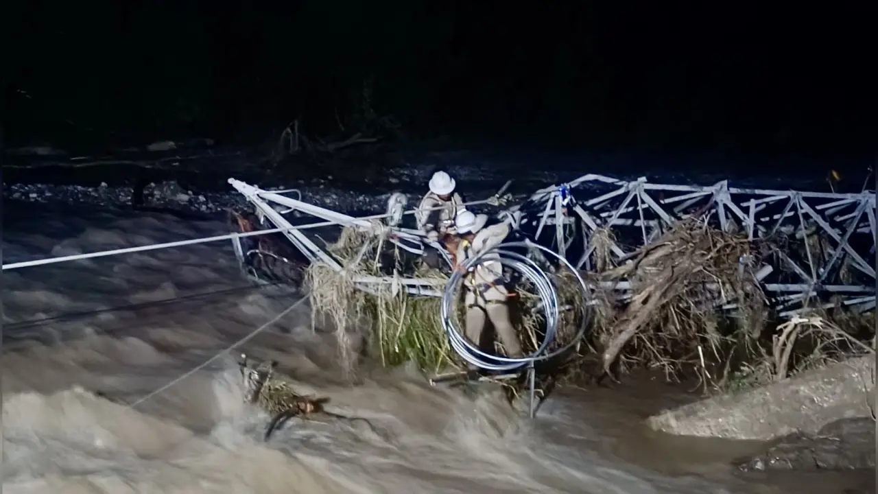 El incidente ocurrió alrededor la tarde del martes, cuando las intensas lluvias provocaron el reblandecimiento del suelo y la crecida de un arroyo, lo que hizo que una torre de tendido eléctrico se desplomara sobre un área pantanosa.