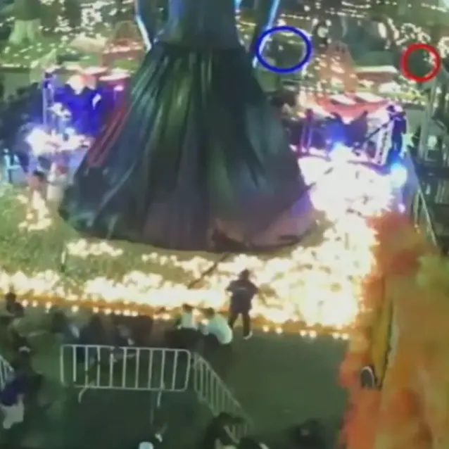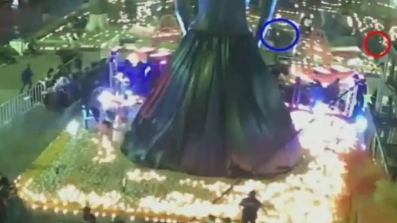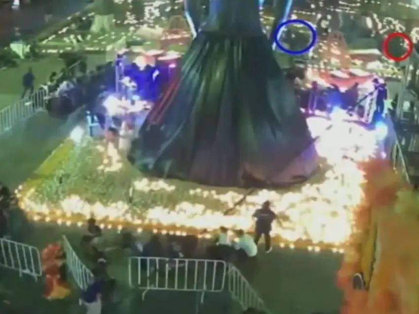 En un segundo clip, se observa cómo el agresor se aproxima al altar de la Catrina, instalado en la explanada de la Iglesia de la Inmaculada Concepción, mientras se desarrolla el evento. Posteriormente, el sujeto cambia de dirección y se coloca en una zona más alta del jardín para acercarse a la víctima desde un punto con menor afluencia de personas.