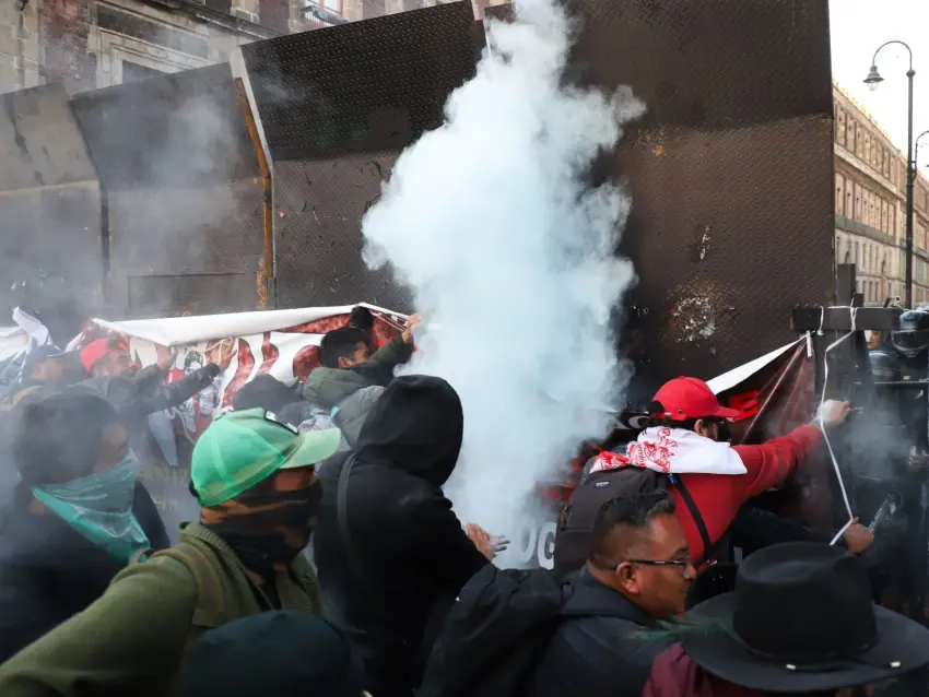 Elementos de la Secretaría de Seguridad Ciudadana (SSC) respondieron con extintores y polvos irritantes, lo que provocó el repliegue de los manifestantes. El motivo de la confrontación fue la exigencia de reactivar las mesas de diálogo con el gobierno federal. La conferencia de la presidenta Claudia Sheinbaum se desarrolla diariamente a las 7:30 de la mañana.