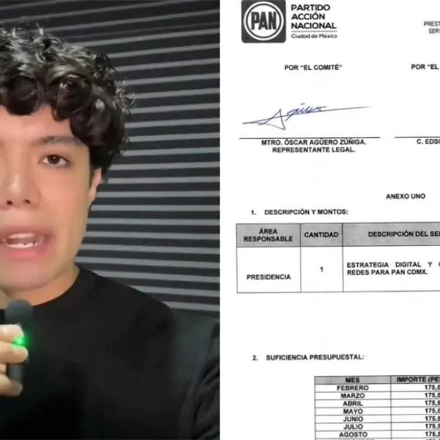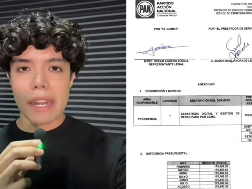 Según los archivos compartidos por la morenista, Andrade , quien públicamente se ha presentado como "apartidista", firmó en febrero de 2025 un contrato por 2 millones 106 mil 810 pesos, pagados en 12 mensualidades de 175 mil 577.50 pesos, por el servicio de "estrategia digital y gestión de redes" para el PAN en la capital del país.
