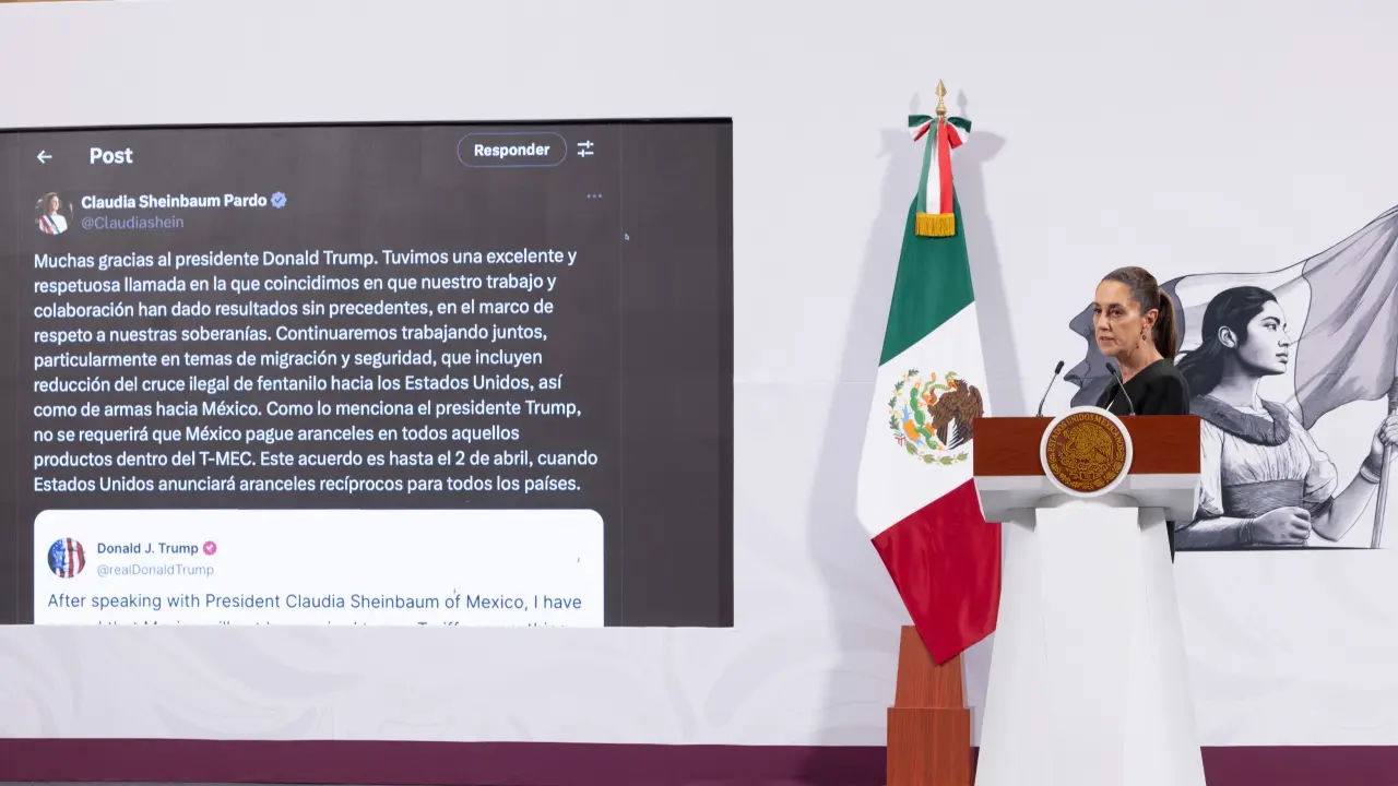 Tras la exposición de Sheinbaum, Trump propuso posponer la aplicación de aranceles hasta el 2 de abril, fecha en la que Estados Unidos revisará su política de tarifas recíprocas con todos los países. La presidenta destacó que, al mantener los aranceles en suspensión, México seguiría exento de estas tarifas, lo que permite continuar con una relación comercial en el marco del Tratado entre México, Estados Unidos y Canadá (T-MEC).