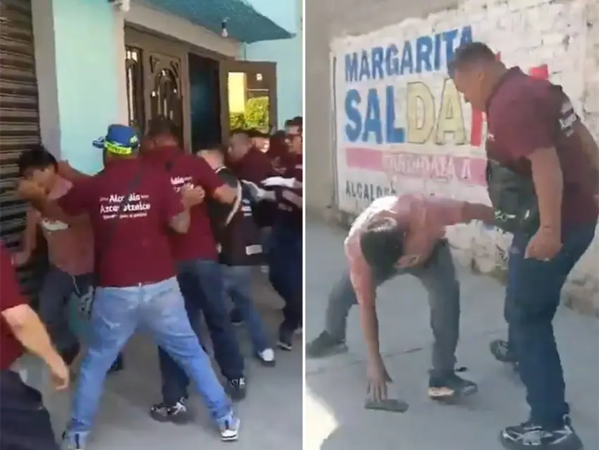 Las imágenes muestran cómo, tras los señalamientos, los funcionarios increpan a los habitantes y el ambiente se enciende. Un hombre vestido de civil intenta zafarse del grupo que lo rodea mientras varias voces gritan "¡Ya, ya, ya!". Aunque logra liberarse por instantes, es perseguido por servidores públicos, lo que intensifica la confrontación.