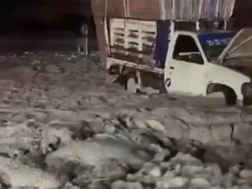 En ese sector, la acumulación de granizo fue tal que el pavimento quedó completamente cubierto de hielo en algunos segmentos, lo que obligó a los conductores a disminuir considerablemente la velocidad.