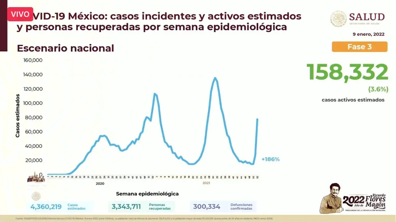 La variante Ómicron ha ocasionado que los contagios en México y en el mundo se disparen en este inicio de 2022. De acuerdo con información del gobierno federal, actualmente hay más de 158 mil casos activos.