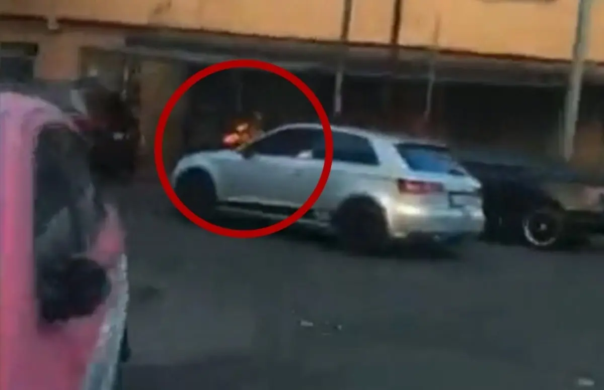 Un par de ciudadanos a bordo de una motocicleta captaron el momento en que el policía iba sobre el capó del vehículo, motivo por el que decidieron seguirlo por las calles, hasta que finalmente el agente cayó al asfalto.