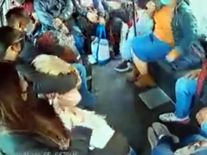 En el video se puede escuchar a uno de los tres ladrones que amenaza con dar un balazo a los pasajeros que no le den sus pertenencias.