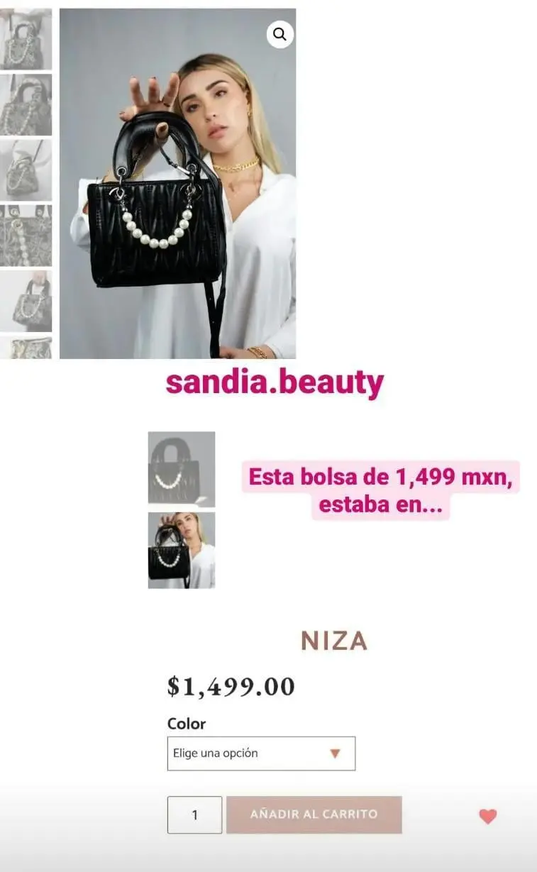 En la página oficial de su marca también se encuentran a la venta bolsas de entre mil 499 pesos y mil 699 pesos, pero una de sus seguidoras descubrió que las bolsas eran de AliExpress.