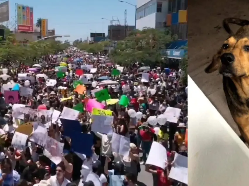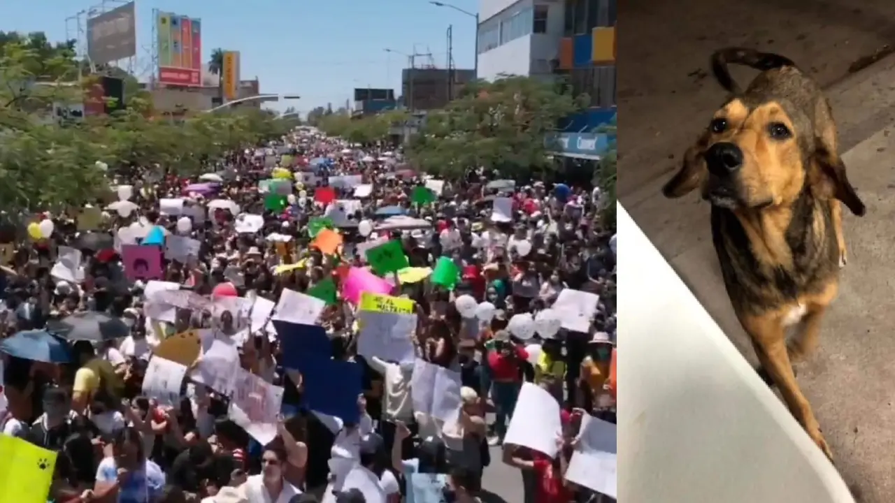 Cientos de personas marcharon este lunes para exigir justicia para "Rodolfo Corazón", un perro que fue asesinado en días pasado con un hacha en Los Mochis, Sinaloa.